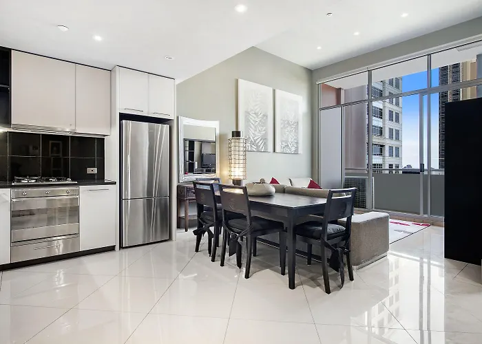 Hotellet Turnkey Accommodation-North Melbourne, som ligger inom 3 km från Melbourne Aquarium, har Wi Fi i allmänna utrymmen och en parkering. Centrala Melbourne ligger inom 2 km och Carltonträdgårdarna ligger ungefär 5 minuters bilresa bort.